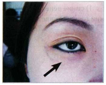 4) выступившие вены под глазами (рис. 63) связаны с гинекологическими заболеваниями, нарушениями месячного цикла, выкидышами. А по поводу мешков под глазами китайская поговорка гласит: «При больной селезенке[9] мешки большие, при больных почках — темные»;