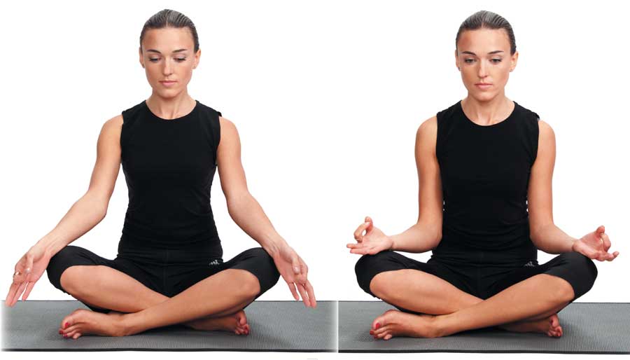 Сукхасана – наиболее частая поза для медитаций и практик пранаямы, когда нередко используются различные мудры. В таком случае руки лежат на коленях или бедрах, пальцы сложены в одной из мудр.