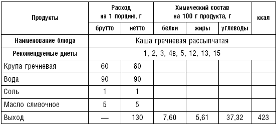 Блюда и гарниры из круп и макаронных изделий (табл. 65–74)