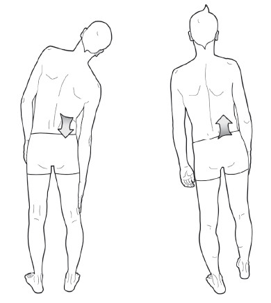 • Наклон поясничного отдела позвоночника в сторону сокращающейся мышцы.