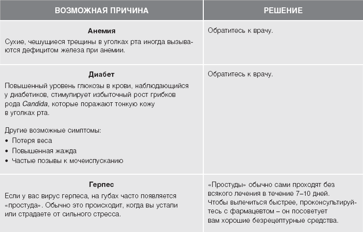 Часто губы трескаются просто из-за внезапных перепадов погоды, например когда вы выходите на сильный мороз, а потом возвращаетесь в сухую, теплую комнату. Также трещины на губах могут появляться из-за избыточного использования бальзамов для губ, которые содержат ингредиенты, формирующие защитный барьер на губах: это не позволяет губам дышать и создавать собственный естественный барьер. (В одиннадцатой главе вы найдете информацию об ингредиентах косметических средств, которых стоит избегать.)