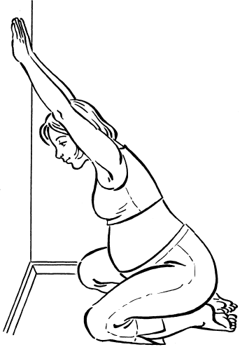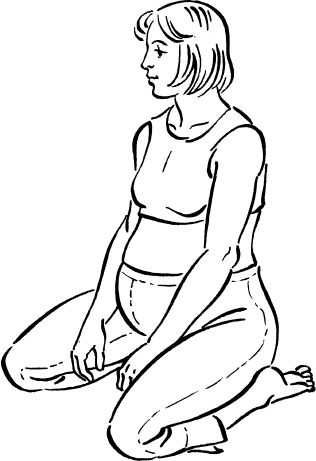 Исходное положение: повернитесь лицом к стене, встаньте на колени, широко их расставив. Таз опустите на пятки.