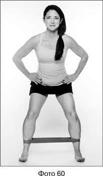 2. Положите руки на бедра и расставьте ноги примерно на ширину плеч, так чтобы эспандер слегка натянулся. Слегка согните ноги в коленях (см. фото 60). Напрягите мышцы кора.