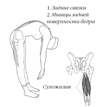 Суставные связки представляют собой тяжи соединительной ткани, идущие от одной кости к другой и служащие для обеспечения стабильности сустава. Если бы не было связок, было бы невозможно поддерживать вертикальное положение тела и позвоночник бы рухнул как карточный домик. С другой стороны, связки ограничивают амплитуду движений, иными словами, сгибание за пределами нормы становится невозможным из-за напряжения связок (1) и мышечно-сухожильного напряжения (2).