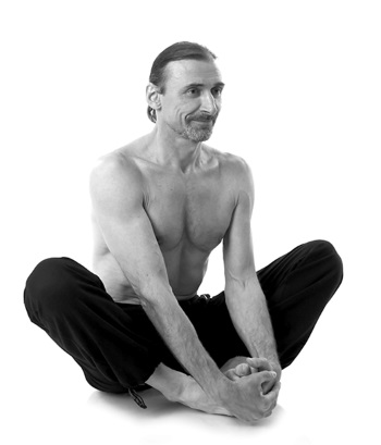 4. Опустите колени как можно ближе к полу, надавливая при этом руками на стопы.