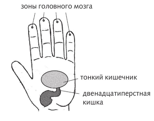 Зона легких (рис. 36, а) неизбежно задействуется при работе с грудным отделом позвоночника по стандартной системе. Зона тонкого кишечника обрабатывается всякий раз, когда мы лечим позвоночник и суставы. Несколько раз проводим по ней указательным пальцем по часовой стрелке (рис. 36, б).