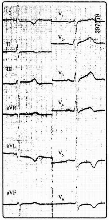 Рис. 41. Реальная электрокардиограмма с признаками гипертрофии левого желудочка (масштаб 1:2)