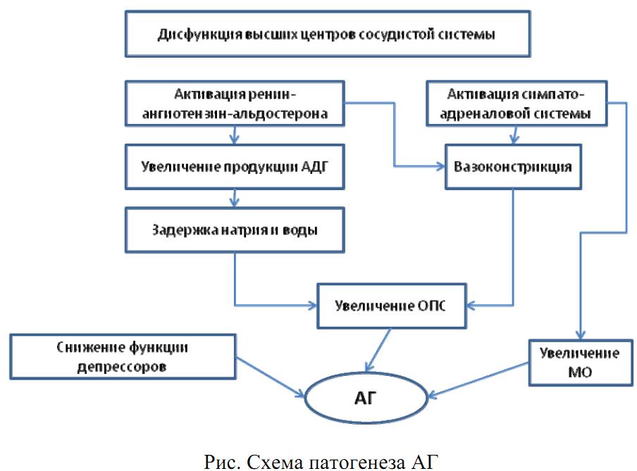 АГ возникает чаще всего в высокоразвитых странах и у людей с повышенной психоэмоциональной нагрузкой, что является прямым до-казательством ведущей роли ЦНС в развитии заболевания. В СНГ рас-пространены представления Г. Ф. Ланга о «неврозе сосудодвигательных центров» и А. Л. Мясникова о «первичном нарушении корковой и подкорковой регуляции сосудистой системы в результате расстройства высшей нервной деятельности».