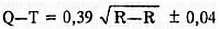 В норме (гл. 1.6) продолжительность этого интервала около 0,40 с, но она зависит от частоты сердечных сокращений. Поэтому более точные нормативные значения этого интервала определяются по соответствующим таблицам или по формуле