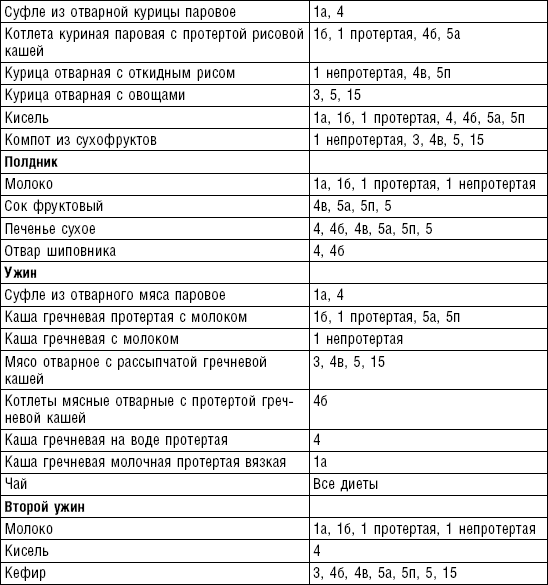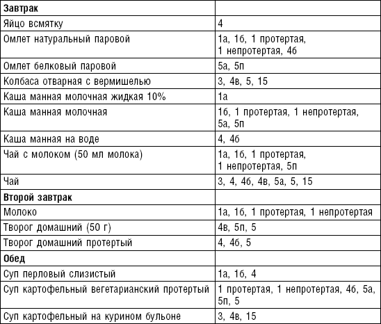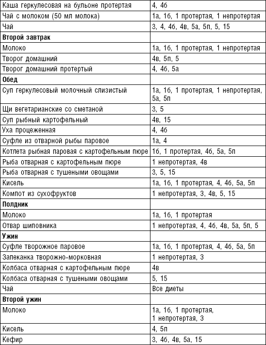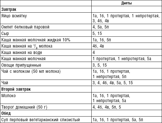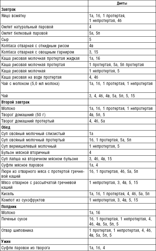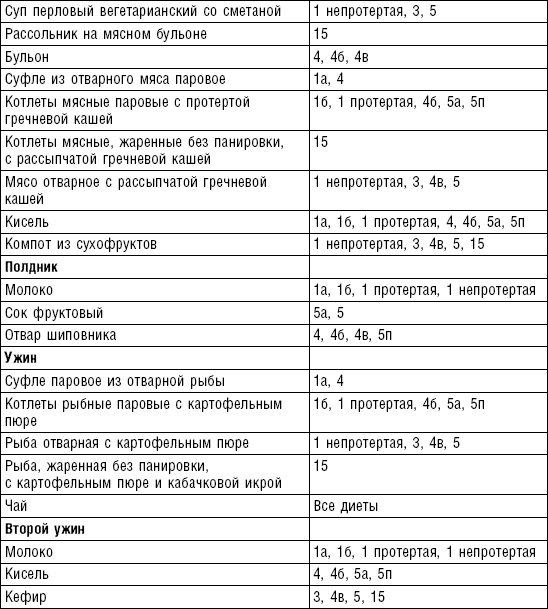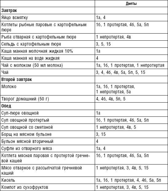 Примерное сводное семидневное меню для гастроэнтерологических отделений больниц