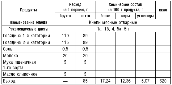 Кнели. Мясо пропускают 3–4 раза через мясорубку с частой решеткой, смешивают с охлажденным белым соусом, со взбитыми белками. Полученную массу опускают ложками в кипящую воду и варят.