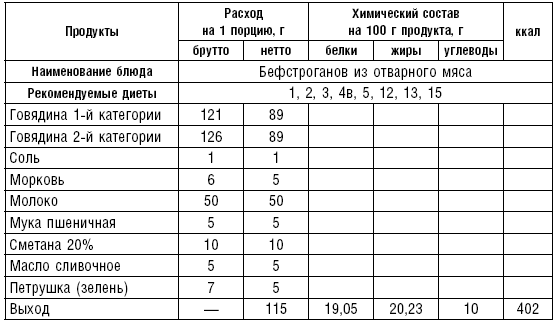 Бефстроганов из отварного мяса. Мясо варят, охлаждают, режут соломкой. Готовят белый соус, заливают им мясо, добавляют соль, перемешивают и варят при медленном кипении 10 мин. В готовое блюдо добавляют масло, мелко нарубленную зелень.