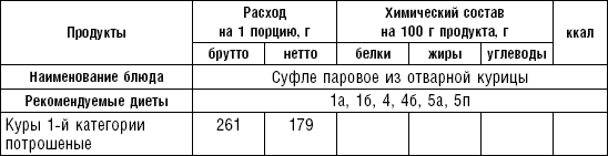 Суфле из говядины. Мясо пропускают 2–3 раза через мясорубку с частой решеткой, соединяют с молочным соусом, смешивают, затем добавляют желтки, взбитые в пену белки. Смешанную массу кладут в форму, смазанную маслом, и готовят на водяной бане. Готовое суфле при подаче поливают молочным соусом.