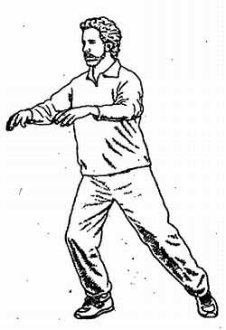 Наконец, поняв и усвоив все это, попытайтесь представить, как горизонтальный круг охватывает все ваше тело; а не только перед ним. Оседая на ногу, стоящую сзади, позвольте рукам мысленно продолжить полукруг за спиной, на уровне почек, затек снова вернуться в исходное положение.