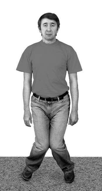 Исходное положение: встаньте ровно; прямые ноги расставлены чуть уже ширины плеч (основная стойка), руки свободно опущены вдоль туловища.