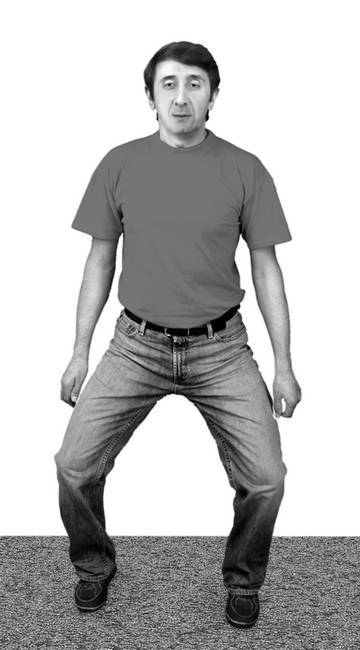Ни в коем случае не отрывайте ступни от пола. И старайтесь «начертить» окружности как можно большего размера (то есть как можно дальше разводите ноги в стороны).