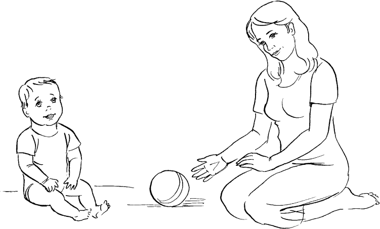 Играйте вместе с ребенком в те игрушки, в которые можно играть вместе, например катать друг другу мяч или машинку.