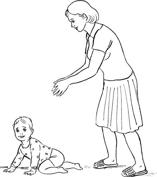 Потопайте ногами около ползающего на полу ребенка, приговаривая: «Догоню-догоню». Он засмеется и попытается отползти от вас. Побегайте за ним, побуждая его двигаться.