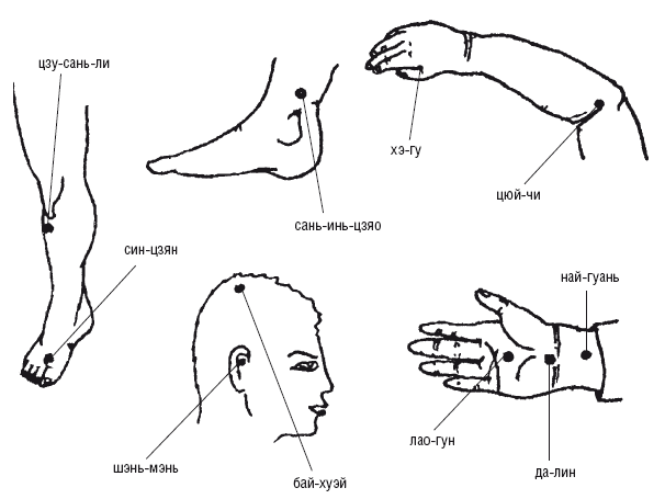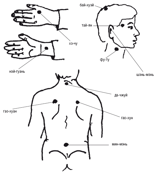 Рис. 47. Методика точечного массажа при повышенном артериальном давлении