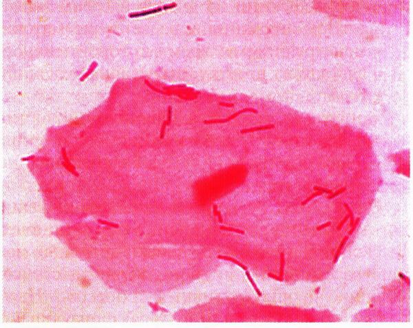 Рис. 12.1. Микроскопия влагалищного мазка. Влагалищный эпителиоцит на фоне лактобактерий