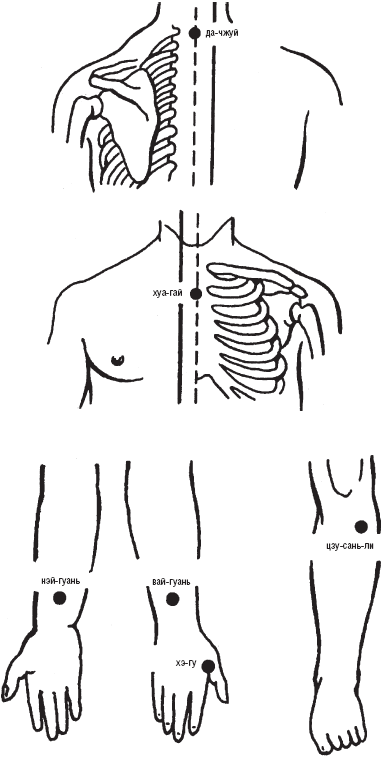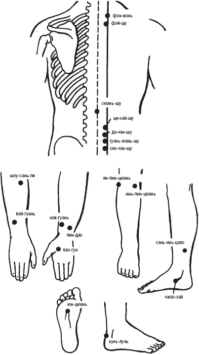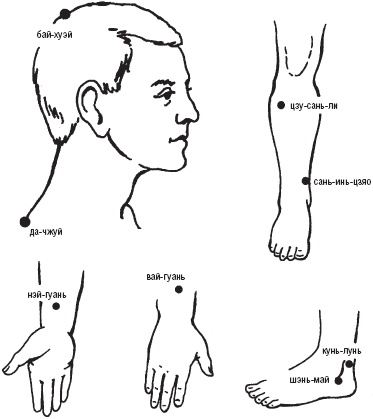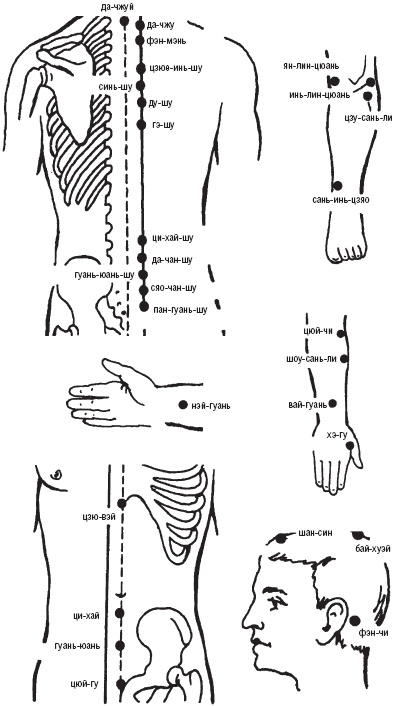Рис. 20. Точки воздействия при общем физическом утомлении