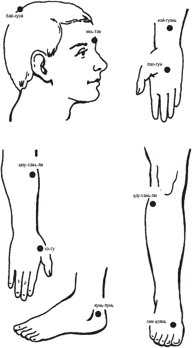 Рис. 34. Точки воздействия при дискомфорте, плохом настроении