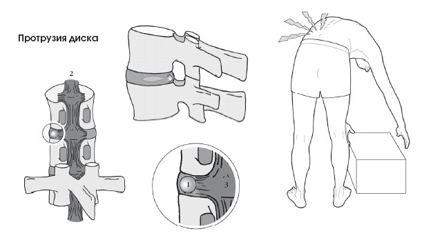 Протрузия диска может рассматриваться как этап, предшествующий появлению грыжи диска. При протрузии контур диска выпячивается, но ядро диска не выходит за его пределы (1).