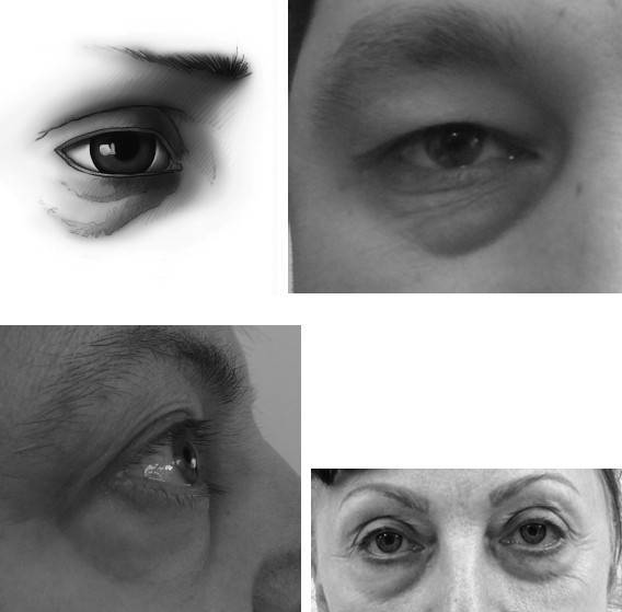 Если кожа нижнего века плотно прижата к мышце, на ней начинают закладываться морщины. В случае же частых отеков или постоянного наличия лишней жидкости между кожей век и мышцами (из-за плохого лимфодренажа) – начинает свисать мешочками.