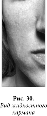 Нарушение натяжения между скуловой мышцей и треугольной приводит в действие новую цепочку связей: происходит дисбаланс между треугольной мышцей и мышцей, опускающей нижнюю губу. В итоге ткани под губой выпячиваются «шишечкой». А при наличии лимфостаза они образуют карман, в который заливается вода.