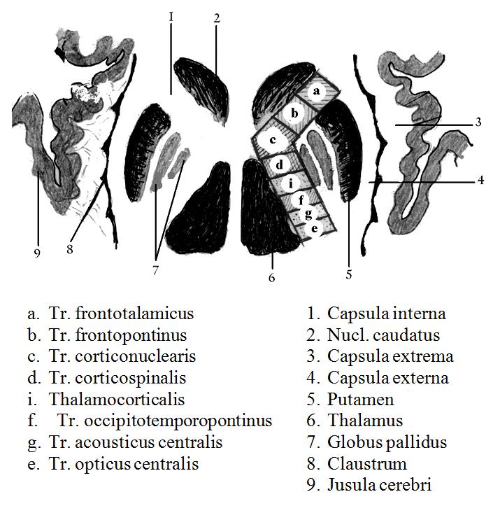Экстрапирамидная система включает клеточные группы коры больших полушарий (преимущественно лобных долей), подкорковые ганглии (хвостатое ядро, скорлупу, латеральный и медиальный бледные шары, субталамическое ядро Люиса), в стволе мозга черную субстанцию, красные ядра, пластинку крыши среднего мозга, ядра медиального продольного пучка (ядра Даршкевича), голубоватое место в мосту мозга, ретикулярную формацию с нисходящими и восходящими путями, мозжечок, y – мотонейроны спинного мозга.