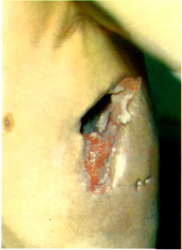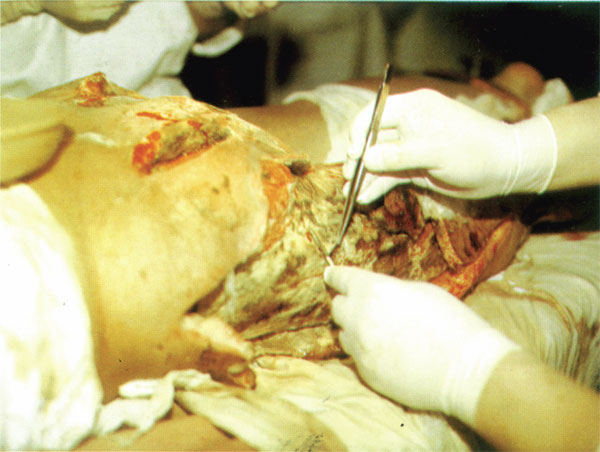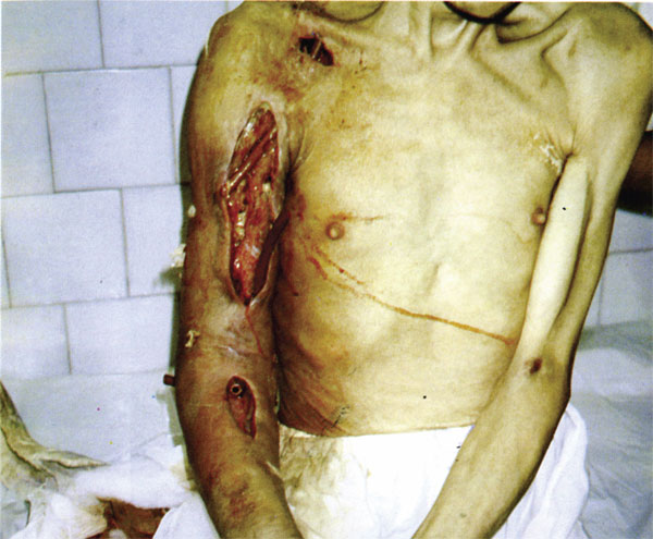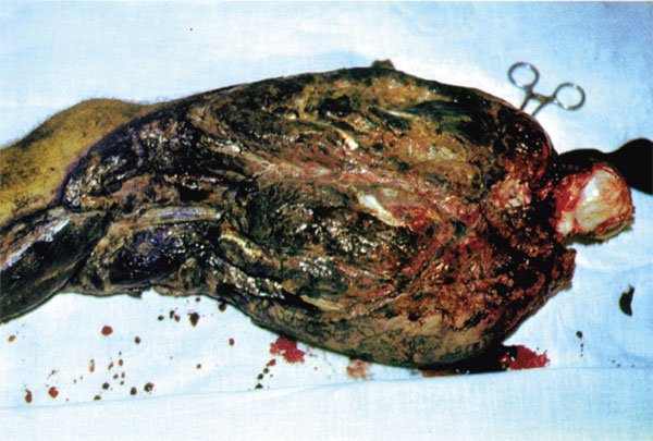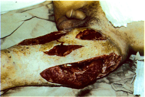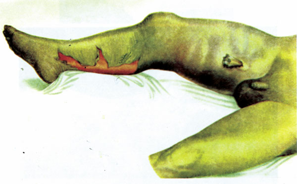 Рис. 12. Симптом Бердяева. «Выпирание» мышц при газовой гангрене