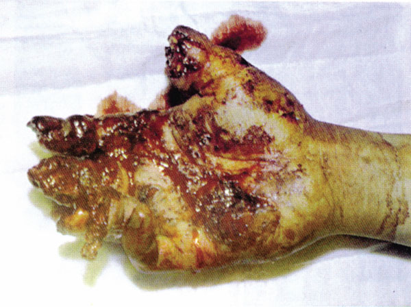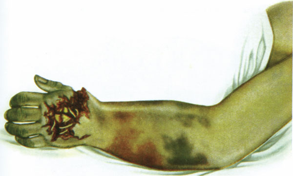 Рис. 10. Газовая гангрена верхней конечности (по П. А.Куприянову)