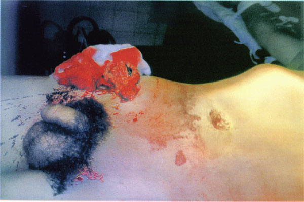 Рис. 6. Проникающее ранение живота с выпадением внутренних органов
