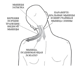Мышцами, осуществляющими наклон шеи в сторону, являются верхняя порция трапециевидной мышцы, паравертебральные шейные, мышцы затылка, мышца, поднимающая лопатку, лестничные мышцы, кивательная мышца и длинная мышца спины (шейная часть). Все мышцы на той стороне, в которую направлено движение.