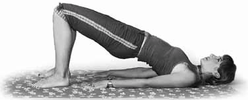 2. Приподнимите ягодицы так, чтобы лобковая кость оторвалась от пола, а поясничный отдел позвоночника максимально прогнулся.