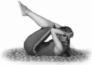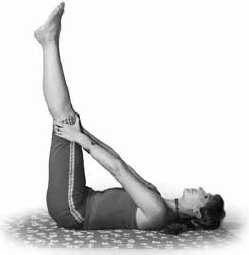 2. Подтяните на себя вытянутые ноги, наклоните прямые ноги в сторону головы (при этом не отрывайте таз и позвоночник от пола).