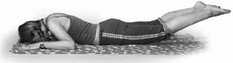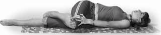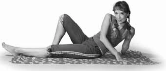 1. Лягте на спину, согните одну ногу в колене и положите ступню согнутой ноги на колено другой ноги, одна рука лежит на колене согнутой противоположной ноги, другая – вытянута в сторону.
