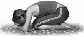 2. Верхнюю часть туловища наклоните вперед, лоб прижмите к полу, руки расположите на полу рядом с бедрами.