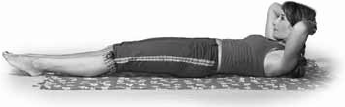 1. Лягте на живот, лоб уприте в пол, руки заведите за голову, обхватите ладонями плечи.