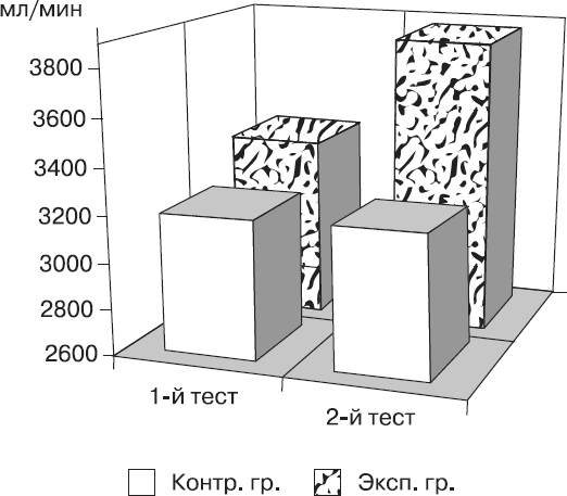 В исследовании (табл. 3) не зафиксировано реального улучшения индивидуальных результатов тестирований спортсменов контрольной группы, что может быть объяснено адаптированностью спортсменов контрольной группы к тренировочным нагрузкам, предшествующим демонстрационной работе, при фактической неизменности этих нагрузок в период нашей работы со спортсменами.