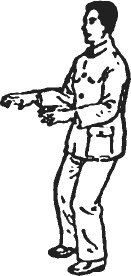 Руки располагаются параллельно ладонями вниз. Пальцы прямые и расслабленные. Нужно сгибать одноименные пальцы обеих рук в месте их соединения с ладонями и медленно опускать их вниз. Пальцы до места сгиба должны оставаться прямыми. Это нижнее положение фиксируется приблизительно 0,5–1 минуту. Затем нужно медленно поднять пальцы несколько выше исходного положения и вернуть их на место, восстановив ровную форму обеих кистей.