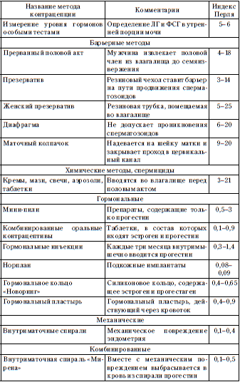 Американский биолог Реймонд Перль придумал свой показатель эффективности – индекс Перля, указывающий на то, насколько надежен тот или другой способ откладывания зачатия. Его метод основывается на экспериментах. Он показывает количество беременностей у 100 женщин, которые пользовались одним определенным контрацептивом на протяжении 12 месяцев. Чем ниже индекс, тем надежнее данный метод откладывания зачатия. И чем он выше, тем больше число неудач. Например, если за год пять женщин (при регулярной половой жизни с использованием одного и того же метода контрацепции) забеременели, то индекс будет равен 5. Однако такие показатели очень условны и на них могут повлиять различные факторы.