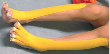 Как и в случае с верхними конечностями, сначала мы тейпировали нижние конечности с пальцами (рис. 47, а, б).