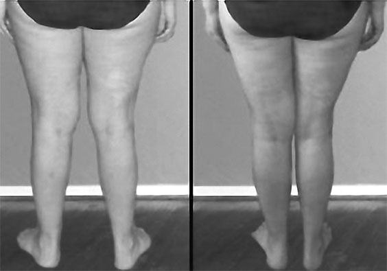Рис. 13. Исправление Х-образной кривизны ног (слева «до», справа «после»)