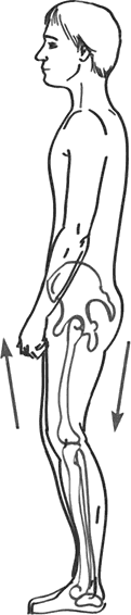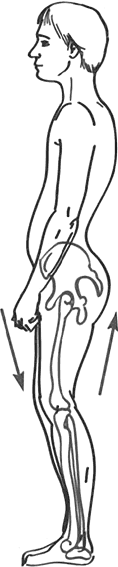 При спрямлении позвоночника (рис. 6) крестец тянется вниз, подворачиваясь копчиком, как хвостиком у собачки (рис. 8). В этом случае передняя поверхность тела находится выше задней.