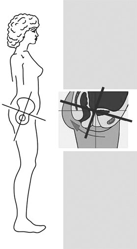 Рис. 9. «Падение» таза вперед: крестец находится выше нормы