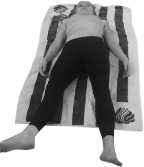 Лежа на спине развернуть стопу наружу на 45 градусов, поднимать прямую ногу вверх к центру.