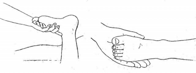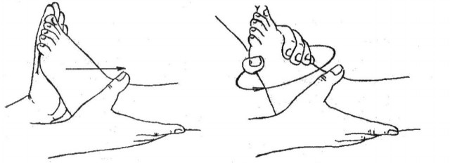 Хорошее растирание области сустава, круговое растирание лодыжек, тонизирующее точечное надавливание вокруг наружной лодыжки.