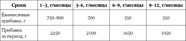 Примерная прибавка в весе в период от рождения до года