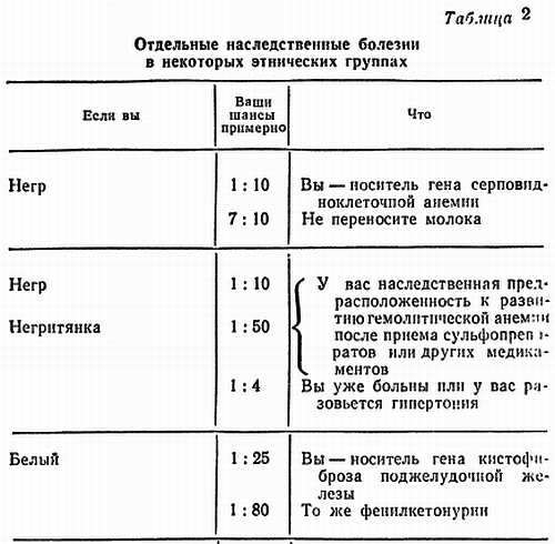 1 Эта таблица дает лишь самое общее представление о значении наследственных болезней, связанных с этнической принадлежностью.